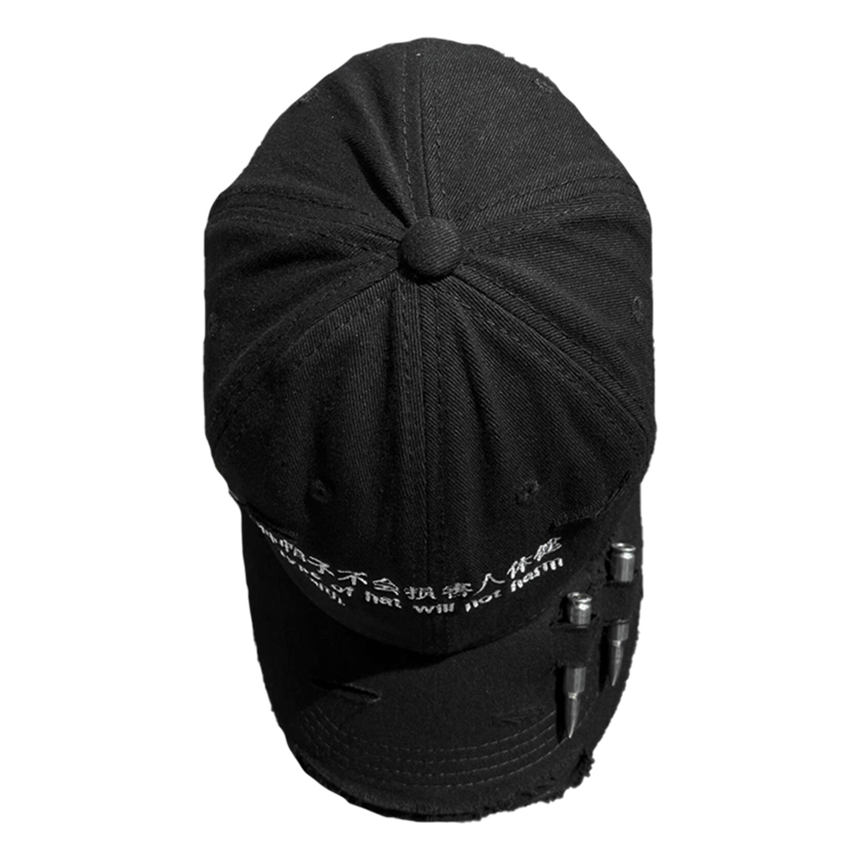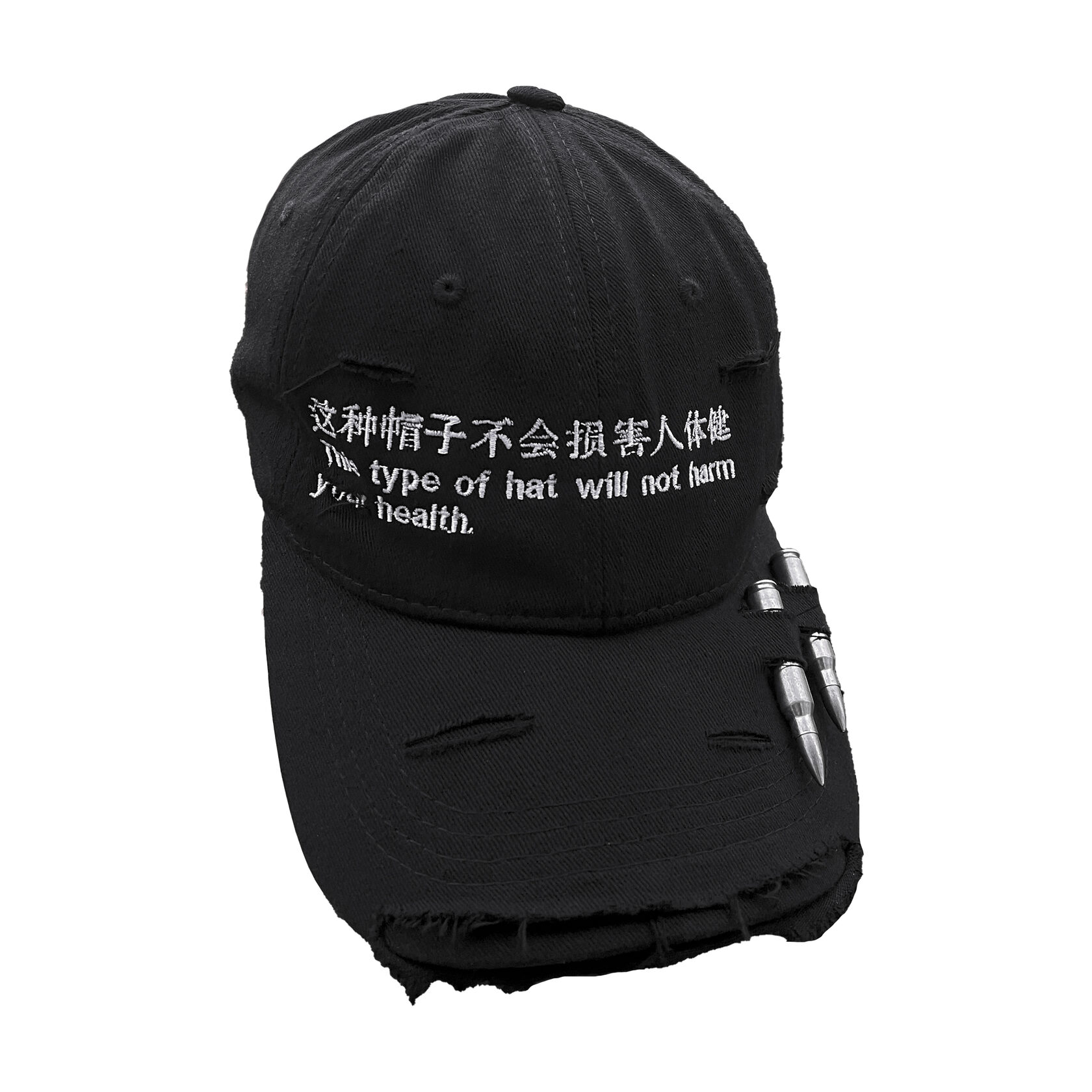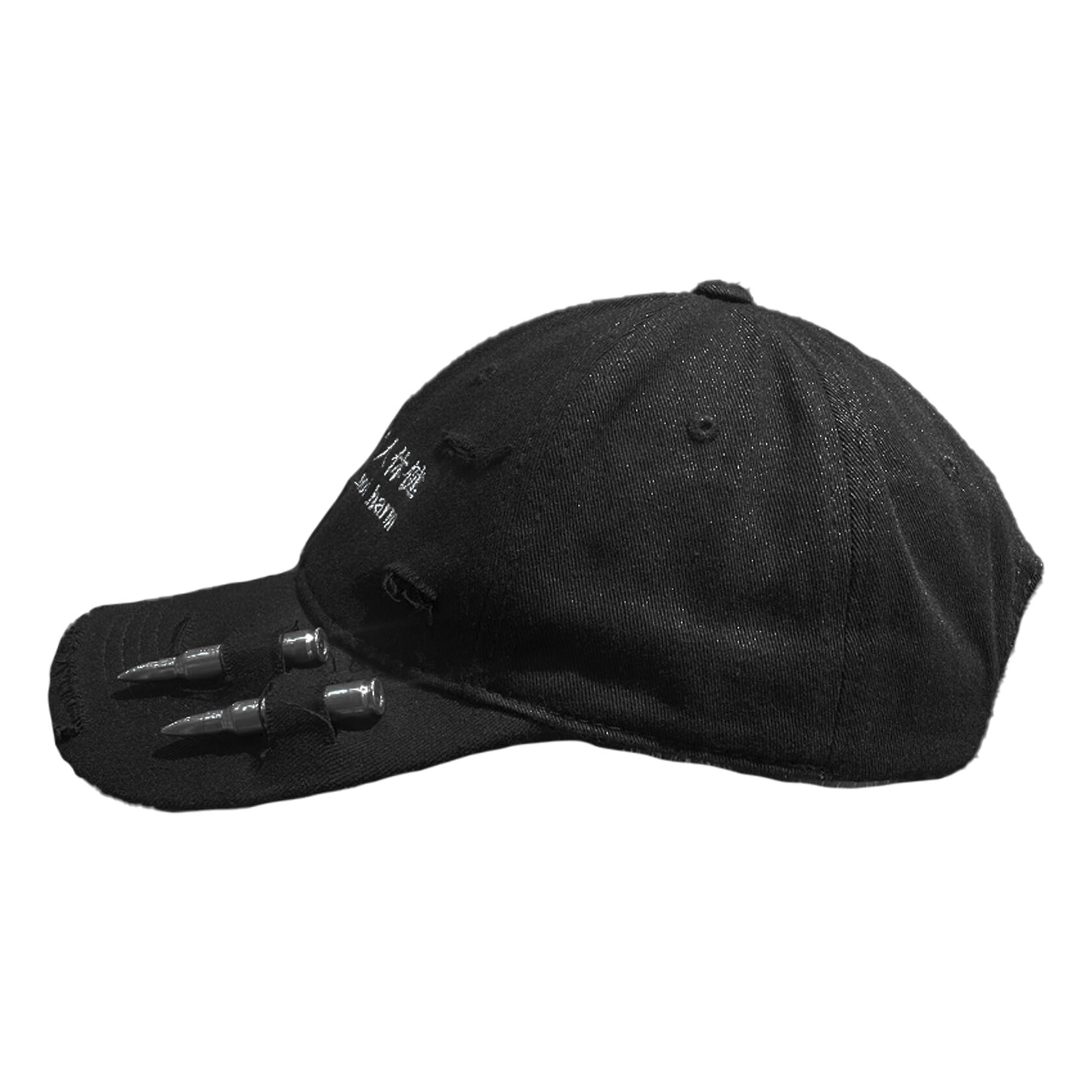 Кепка выполнена из 100% хлопка, вышивка белого цвета спереди. На козырьке расположены хромированные металлические патроны.